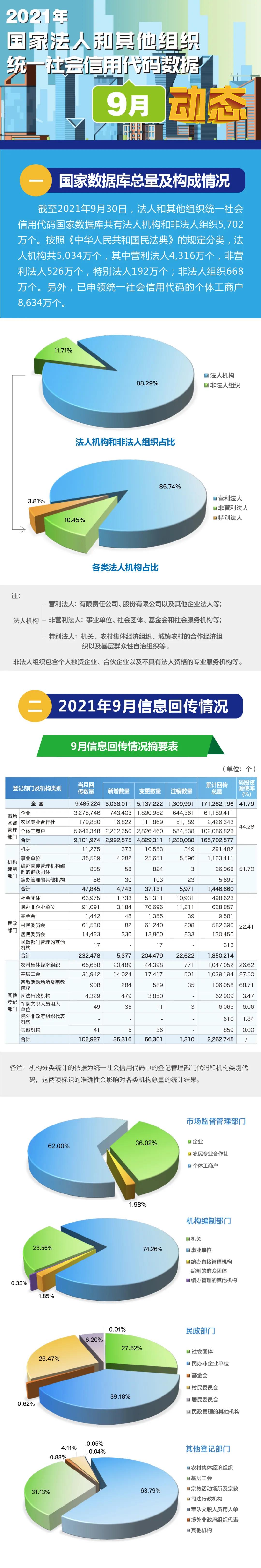 【图解信用】2021年国家法人和其他组织统一社会信用代码数据9月动态