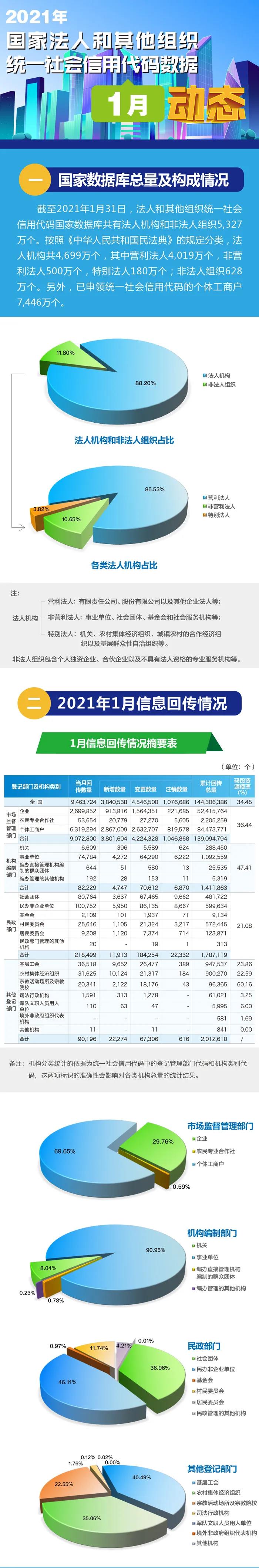 【图解】2021年国家法人和其他组织统一社会信用代码数据1月动态