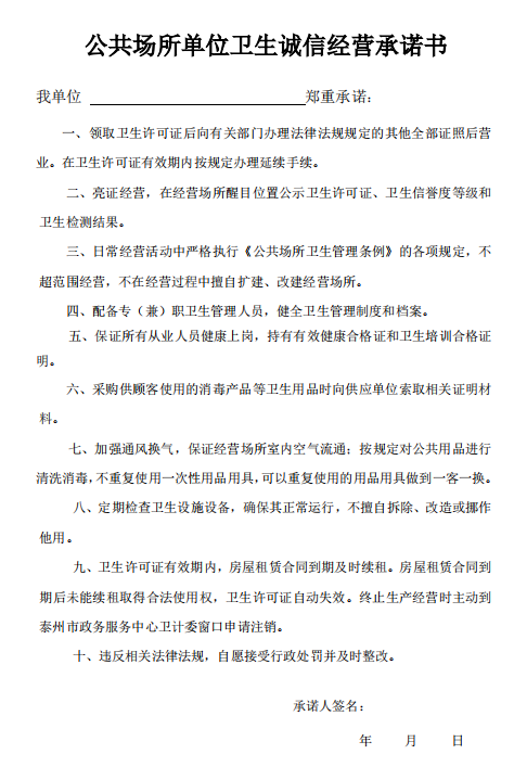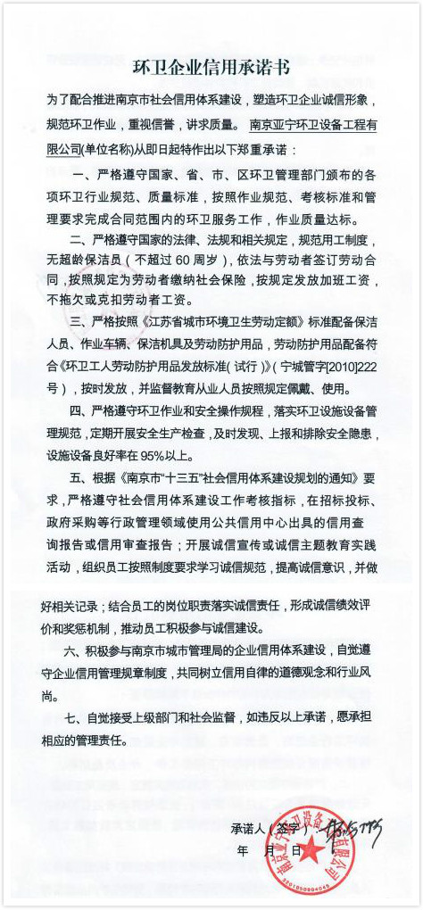 市场类信用承诺书