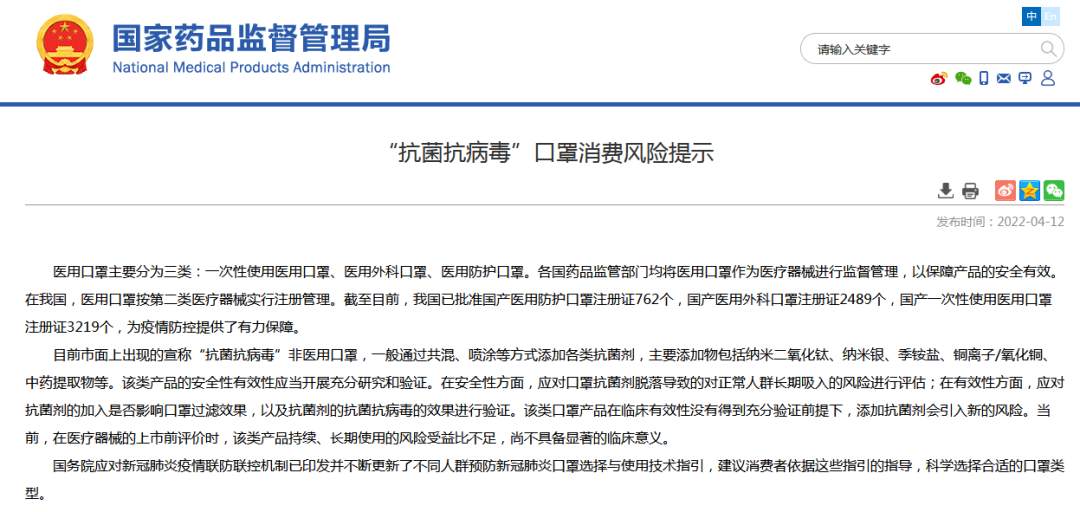 “抗菌抗病毒”口罩靠谱吗?国家药监局这样说